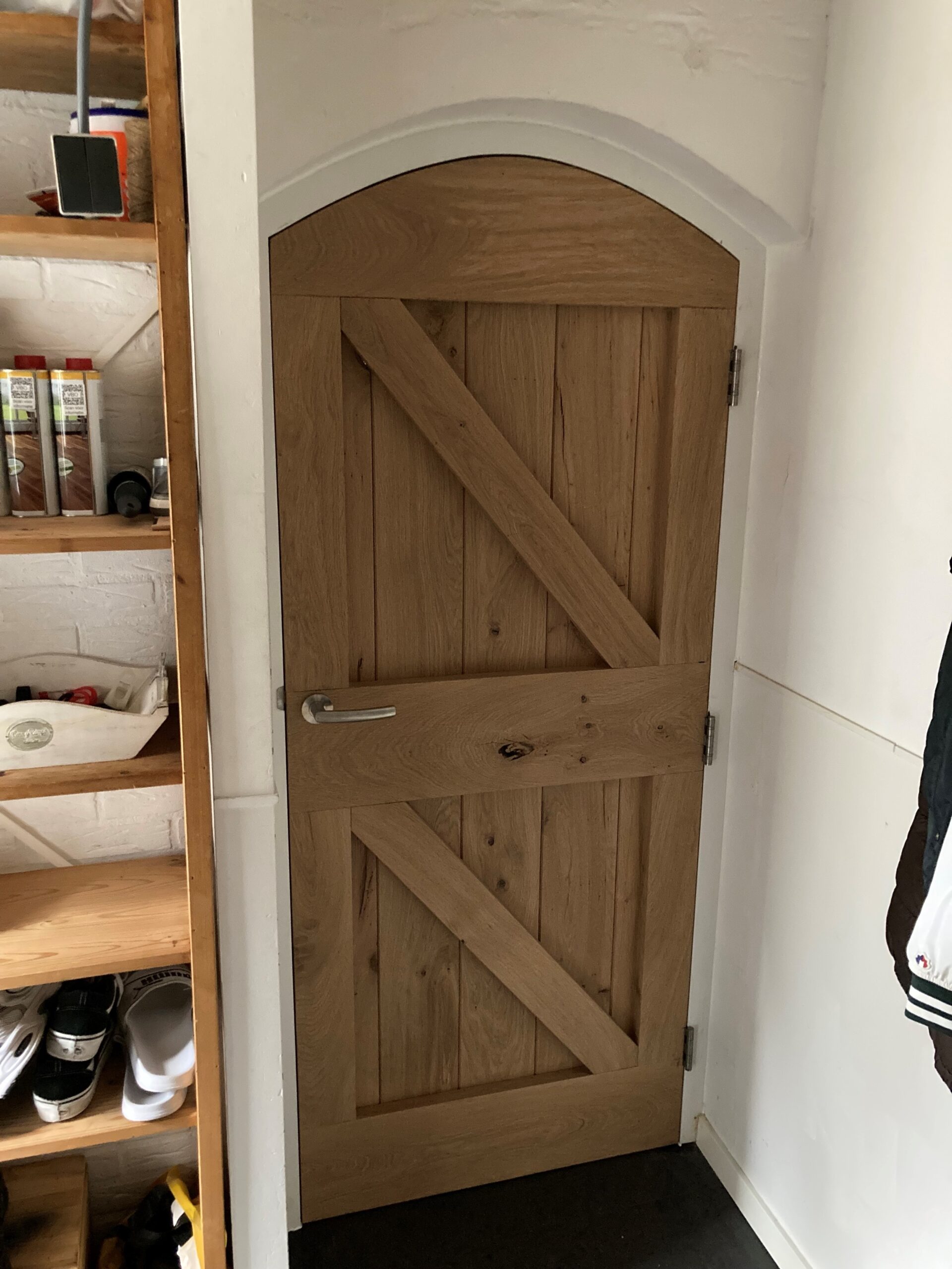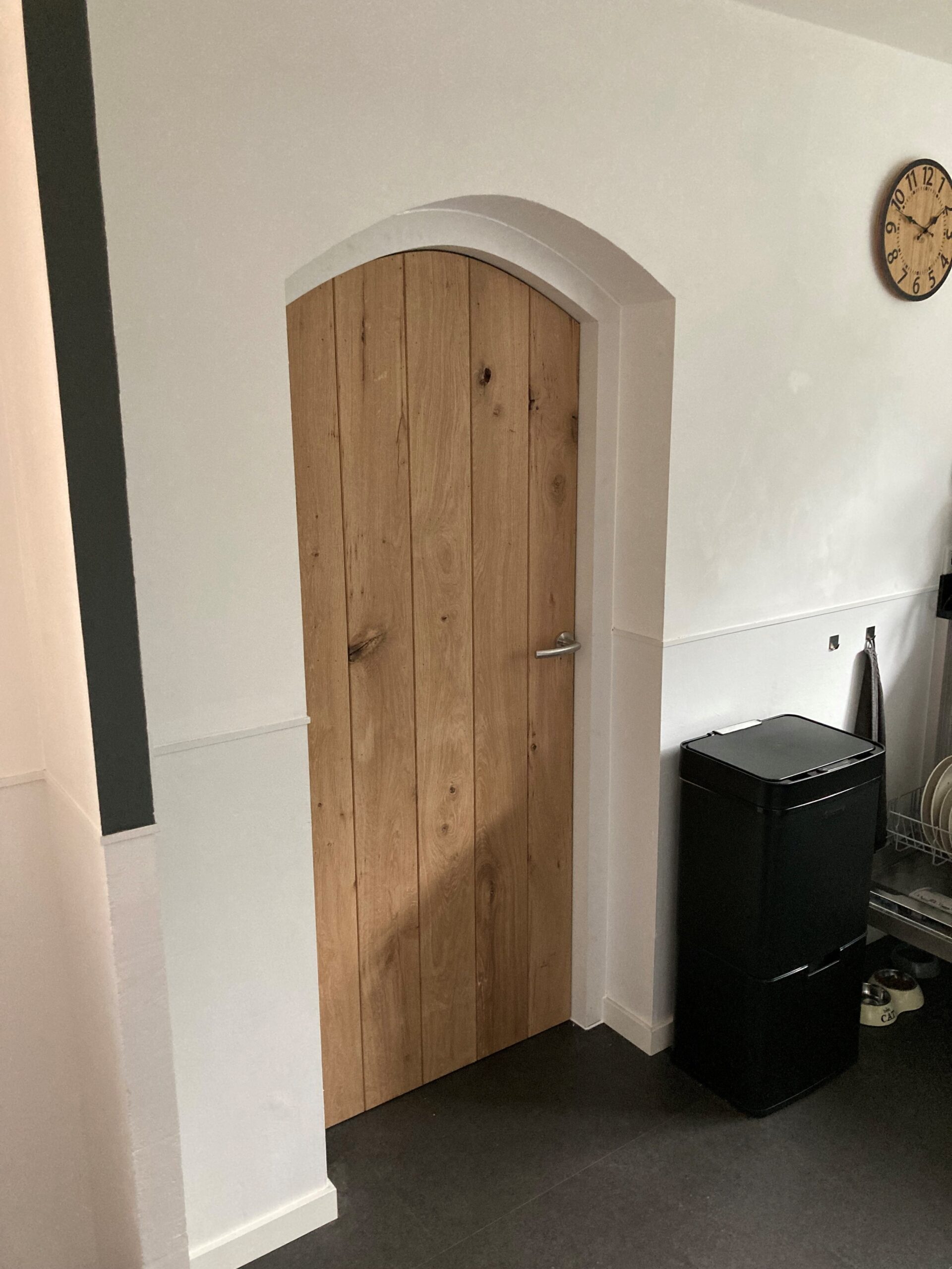 Naar overzicht Getoogde eiken binnendeur met tochtkader Massief eikenhouten toogdeur in kozijn. Naar overzicht